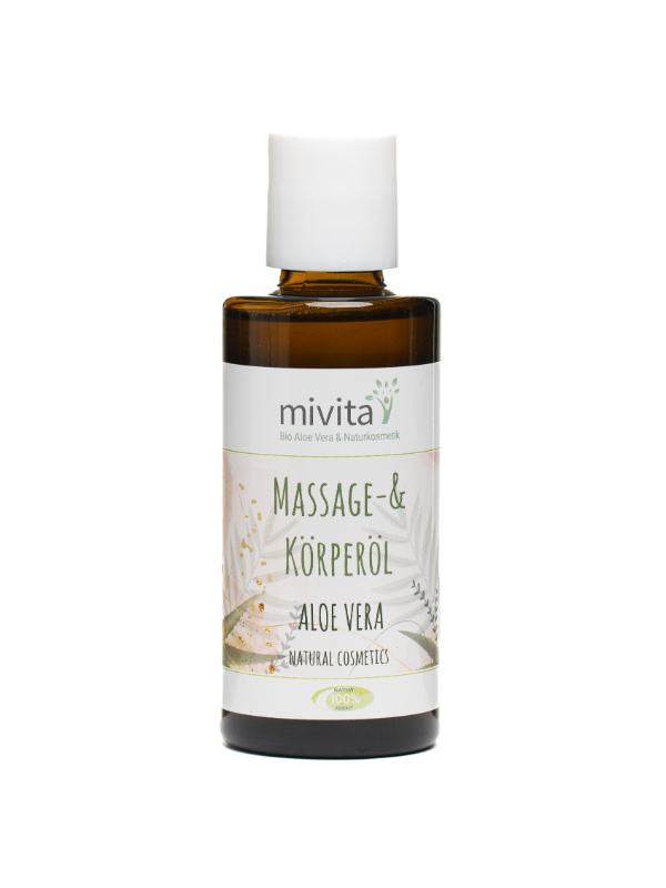 Aloe Vera Massageöl mit Mandel-, Oliven- und Jojobaöl wirkt beruhigend & entspannend bei trockener & spröder Haut und macht sie zart und geschmeidig. Das Massageöl ist nicht nur für eine wohltuende Massage geeignet, sondern auch nach dem Saunabesuch oder der täglichen Dusche.